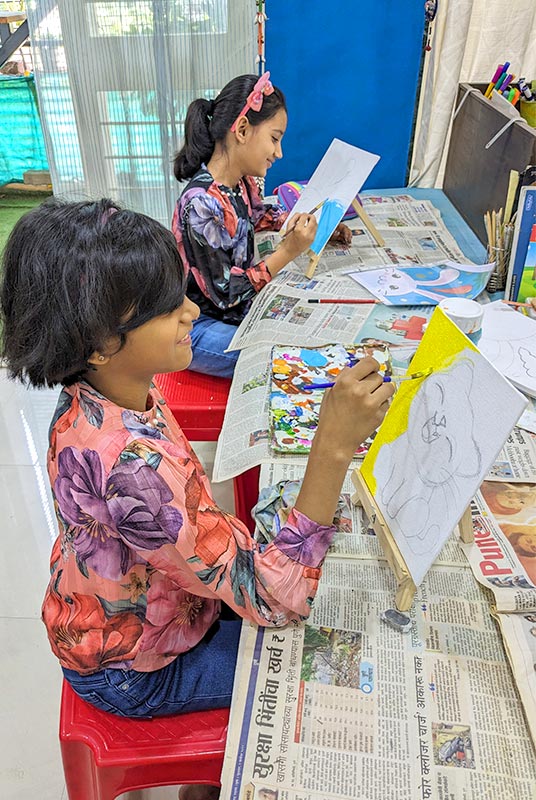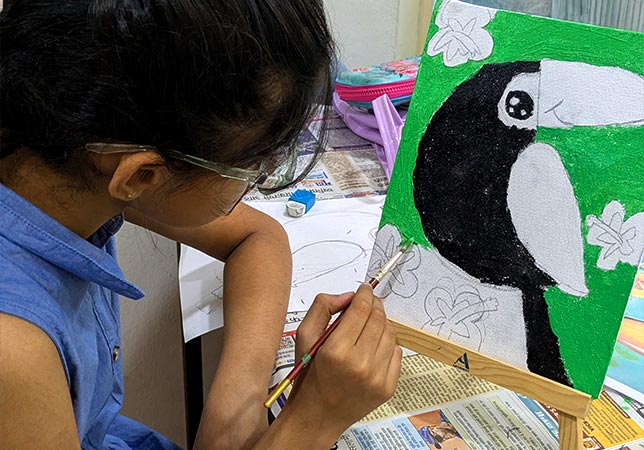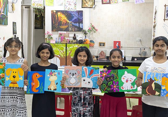 A unique art classes for kids and adults where students experience a balanced blend of learning techniques and exploring their creative depths. Each individual has his/her own style and ways to express. Aasmafilms Art Academy provides them a safe space to develop their fine motor skills, observation, story-telling through conversations and discussions, focus and concentration.